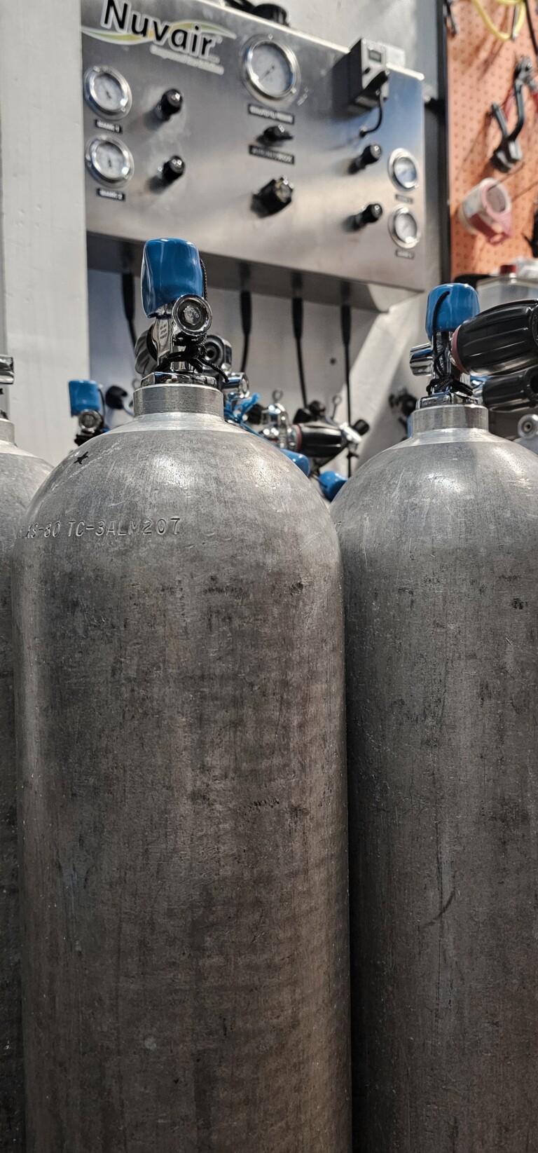 Need your tank filled for your next dive. Stop by and we’ll fill it while you wait, or you can drop them off. Need to stop by during off hours, no problem just give us a call and we will work with you on a time to make sure you get the fill you need, when you need it.